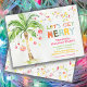 Let's get Merry wit this Tropical Beach themed Holiday Christmas Party invitation with watercolor palm tree, ornaments, Christmas lights and fun fonts. Great for a island, beach or any warm weather climate Holiday Christmas Party