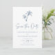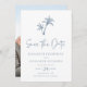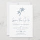 Tropical Palm Tree Dusty Blue Beach Wedding Save The Date