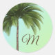 Tropical Palm Tree Green Elegant Monogram Classic Round Sticker