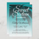 A chic modern tropical green ombre design Sweet 16 birthday invitation with a palm tree background. The bright viridian green fades onto a white background. The text "Sweet Sixteen" in white is set in modern script. Elegant 16th birthday party invitation for a glamourous Sweet Sixteen, perfect for her, the fashionista who loves modern pattern, luxury and glam with a tropical beach theme. Exclusively designed for you by Happy Dolphin Studio.