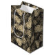 Tropical Palm Tree Leaves Pattern Black Gold Medium Gift Bag