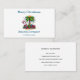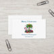Business cards with a seasonal holiday image. A tropical palm tree decorated in festive lights with a star on top. A giant red and white candy cane sticking out of the sand. Christmas presents under the tree. Whimsical and fun.