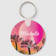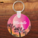 Tropical Palm Tree Neon Pink Pattern Name Keychain