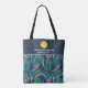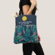 Super cute double-sided tote bag for your pickleball paddle and gear.  Design features a yellow pickleball, two lines of custom text set above a tropical blue, green and pink palm tree leaf pattern.  Get matching totes for your club, team or pickleball trip . . . Makes a nice gift for the pickleball player in your life.