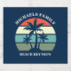 Cute beach party champagne label for summer or spring break on an island cruise or tropical seaside trip. Features beautiful palm trees in front of a pretty ocean sunset. Customize for a family reunion or other coastal bash.