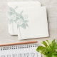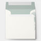 Custom square wedding invitation envelope in cream, with graphics of a pale teal palm tree, on the front, and a light teal colour lining the inside of the envelope. Black text, on the back flap, is fully customizable to suit your needs. Lovely finishing touch to our beach theme palm tree wedding set.