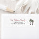 Tropical Christmas return address label, with a palm trees and string lights design. With customizable lettering, you add your own information. Great for your beach themed holiday cards and invitations.