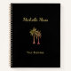 Elegant gold and black tropical Beach Notebook, with a palm trees design and customizable lettering. A simple and modern addition to your home office or small business.