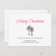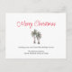 Tropical Christmas greeting postcard, with a palm trees illustration and script typography. With red and black customizable lettering, you add your own information. A cheerful a d festive way send holiday wishes to friends and family from the Beach.