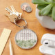Introducing our Tropical Palm Trees Beige Stripes Beach House Keychain. Featuring watercolor illustration tropical plants with beige stripes as background. Suitable for Rental vacation beach house, coastal cottage, or even boat and ship.