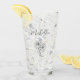 Tropical foliage personalized drinking glass, with a palm tree drawing and elegant script customizable lettering. Great for adding a botanical beach theme to your beverages.