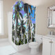 Bold Shower Curtain with a Tropical palm trees design in a colourful posterised style..