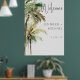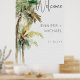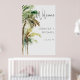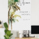 PLEASE NOTE - THIS IS A POSTER, AND MUST BE MOUNTED TO SOMETHING STIFF IN ORDER TO DISPLAY ON AN EASEL. IF YOU PREFER A SIGN TO DISPLAY WITHOUT MOUNTING, A FOAMBOARD OPTION IS AVAILABLE IN OUR STORE. This design features a group of beautiful tropical lush green and brown watercolor palm trees on a simple, clean white background. Personalize it with the new couple's names and wedding date and display it at the wedding venue or reception. Created by Simply Farmhouse Press.
