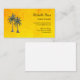 Tropical event planner business card, with a palm trees drawing design on a golden yellow background. With black typography lettering, you customize with your own name or title. A modern professional way to get the word out about your business.