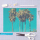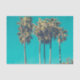 Tissue paper with a beautiful photograph. Tall palm trees with long skinny trunks in front of a lovely green sky. Retro colour scheme. Relaxing and chill.