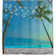 Tropical Palm Trees String Lights Beach Shower Curtain - Decorate your beachy bathroom with this tropical featuring palm trees with romantic string lights on a white sand beach and a boat drifting on the turquoise sea! This is a beautiful shower curtain for your beach or vacation home in Hawaii, Florida or any other tropical destination. Photograph and design by T.K Goforth, and signed by the artist, all rights reserved.