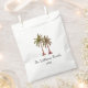 Tropical summer swim party favour bag, with a palm trees illustration design and black customizable lettering. Great for planning your picnic pool party with a beach theme.