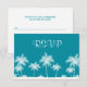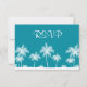 Tropical themed Bat Mitzvah RSVP response card. A trendy design in teal blue with white palm trees.