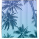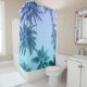 A trendy tropical inspired shower curtain with a teal blue and ultra violet purple gradient.