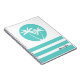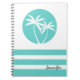 A simple relaxing tropical design with island vibes, a pair of palm trees sway against a cool aqua rounded background with coordinated stripes in the same colour. Personalize with your desired name, monogram or other text. This notebook is a nice choice for school, office or personal use.