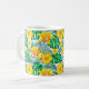 This ceramic coffee mug is shown in a lovely tropical palms floral print.