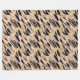 Tropical animal pattern of watercolor tiger stripes and golden palm fronds set on a pastel pink and purple background.