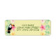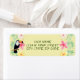 Here's return label with a tropical theme. This design features a yellow background with green ferns and tropical flowers. On the left side label there's a tropical bird. You can customize background colour.