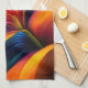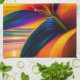 Beautiful kitchen towel features bold and bright tropical floral and beach sunset | AI created surreal fantasy digital art.