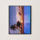 This game puzzle is shown with a photo print of a beautiful tropical sunset.