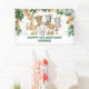 Safari themed welcome banner featuring watercolor tropical green and gold greenery and a group of cute jungle animals. Customize the wording to suit your occasion, e.g. baby shower, baptism, birthday, naming day, christening, etc