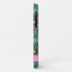 Super funny tropical pickleball party with pink flamingos, drinks and tropical foliage. iPhone 11 Case with custom text