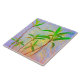 The tropical artwork in pastel colours on this 6” Ceramic Tile was made from an original photograph by ZoeSPEAK. The photo looks up at the long, thin stems of the plants while sunlight shines through their light green leaves. The light blue background is tinged with yellow and salmon pink.