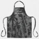 Tropical Design with Name of Chef printed on the front. Black Silhouetted Trees Effect. Pattern of leaves and wording that shows the cook.