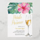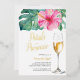 Celebrate your bridal shower with our exquisite "Petals and Prosecco" invitations, featuring elegant gold foil lettering and a top border of vibrant pink watercolor hibiscus flowers alongside a glass of champagne. The unique watercolor art and design by Victoria Grigaliunas adds a touch of sophistication and joy to your event. Perfect for a chic brunch bridal shower, these invitations can be easily personalized to include your custom text, ensuring a memorable and stylish celebration.