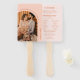 The perfect accessory for any outdoor wedding. This customizable, personalized fan not only keeps your guests cool but also doubles as a vibrant part of your wedding program. Ideal for summer, spring, or fall weddings, it features a delightful blend of pink, peach, orange, coral, cream, and rust tones, making it a standout choice for various themes such as tropical, beach, whimsical garden, and sunset-themed weddings. Whether you're planning a retro 70s, boho disco, groovy hippie, or simply a funky and colourful celebration, this fan adds a unique and functional touch to your special day.