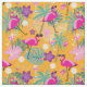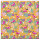 Fabric with tropical pickleball pattern and white pickleballs. Sunny yellow background.