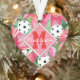 Custom text. Tropical pickleball pattern with green leaves and pink hibiscus flowers on dark green background. Heart shaped ormanent