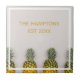 Decorate your kitchen and commemorate your wedding anniversary year with this tropical themed tile. Design features a fun picture of pineapples. Personalize with the easy to use text template. Find matching products in my Tropical Pineapple Wedding Collection.