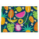 This is cute vibrant colourful tropical fruits with pineapple, papaya, dragon fruit, mango, banana, watermelon, and lemon with tropical leaves on dark background