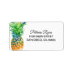 This trendy address label features a tropical pineapple on the left and your address on the right in modern black script typography on white background for you to personalize. Designed by artist © Susan Coffey