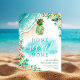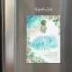 Affordable custom printed moving announcement magnetic cards personalized with your family's new address and contact info. This colourful tropical design features a floral border and pineapple with abstract blue watercolor background, perfect for a move to the beach! Use the design tools to customize the text, edit the fonts and colours or add your own photos to create a one of a kind new address magnet for your family or business.