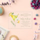 Invite guests to celebrate the bride-to-be with these bright and colourful cocktail bridal shower invitations! The invite features a watercolor illustration of a dry martini garnished with pineapple, mint, and surrounded by yellow and white flowers with an acrylic background. The bride-to-be's name is displayed in a handwritten green script with the bridal shower details in modern sans serif lettering. This modern bridal shower invitation is perfect for tropical, cocktail-themed bridal showers in the summertime (or anytime).