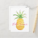 This bright and cheerful postcard is decorated with a watercolor yellow pineapple and the words Hello Summer in pink.