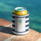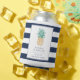 Commemorate your wedding in island preppy style with these wedding favour can coolers, featuring a green and golden yellow pineapple illustration with the couple's names, wedding date and location in navy blue. A navy and white striped background finishes this design, perfect for Hawaii, Newport, island or southern weddings where the pineapple reigns supreme!
