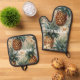 Tropical Pineapples Floral Oven Mitt & Pot Holder Set