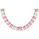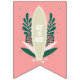 Surfs up! Tropical surf themed baby shower bunting with a natural wood grain surfboard and tropical leaves in shades of pink and green.
