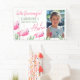 Aloha handwritten script girl trendy Hawaiian luau summer birthday party sign banner featuring hot pink flamingo birds and green tropical leaves. +++++++++++++++++ Suitable for summer tropical Hawaiian luau themed, beach or by the sea birthday parties.