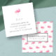 A girly tropical business cards in a unique square shape feature Victoria original watercolor pink flamingos encircling your name and business. Personalize with your name and title or business. Add your full contact details to the reverse side in grey type with a single watercolor pink flamingo. Suitable for any occupation, event planner, consultant, hair stylist, or to use as a mommy card.