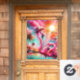 Tropical Pink Flamingos Palm Trees Sun Water Teal Window Cling