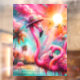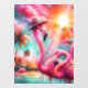 Tropical Pink Flamingos Palm Trees Sun Water Teal